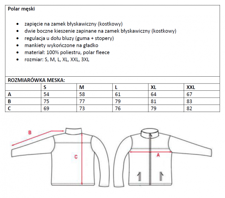 Nawiązując do Waszych pytań podajemy tabelę rozmiarów przysłaną nam przez producenta