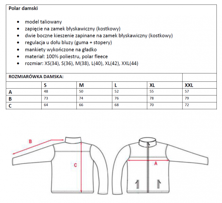 Nawiązując do Waszych pytań podajemy tabelę rozmiarów przysłaną nam przez producenta