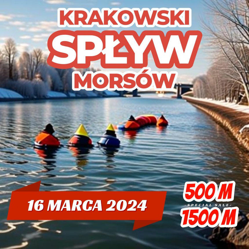 Do wyboru 2 dystanse 500m i 1500 m na których zmierzycie się ze swoimi słabościami uzbrojeni, jak na morsów przystało, wyłącznie w strój kąpielowy, płetwy i obowiązkowo w bojkę pamelkę. Mierzcie siły na zamiary, bo mimo nadchodzącej wiosny w zimnej wodzie trzeba będzie spędzić więcej niż 5 minut. Baza imprezy to Yacht Klub Polski Kraków przy ulicy Stanisławy Dowgiałło 1. Spotykamy się o 9.00 w sobotę 16 marca. Rejestracja, formalności, badanie trzeźwości i od 11.00 zaczynamy!!! Wywieziemy Was w górę rzeki gdzie wejdziecie do wody i spłyniecie z powrotem do bazy. Na miejscu będzie na Was czekać cos ciepłego do jedzenia i picia, grill, wesoła atmosfera oraz oczywiście medale i szczery podziw kibiców.